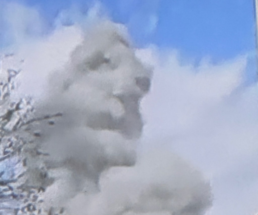 (I saw this face in the explosive sky while watching news coverage of the war in Tehran on CNN.)